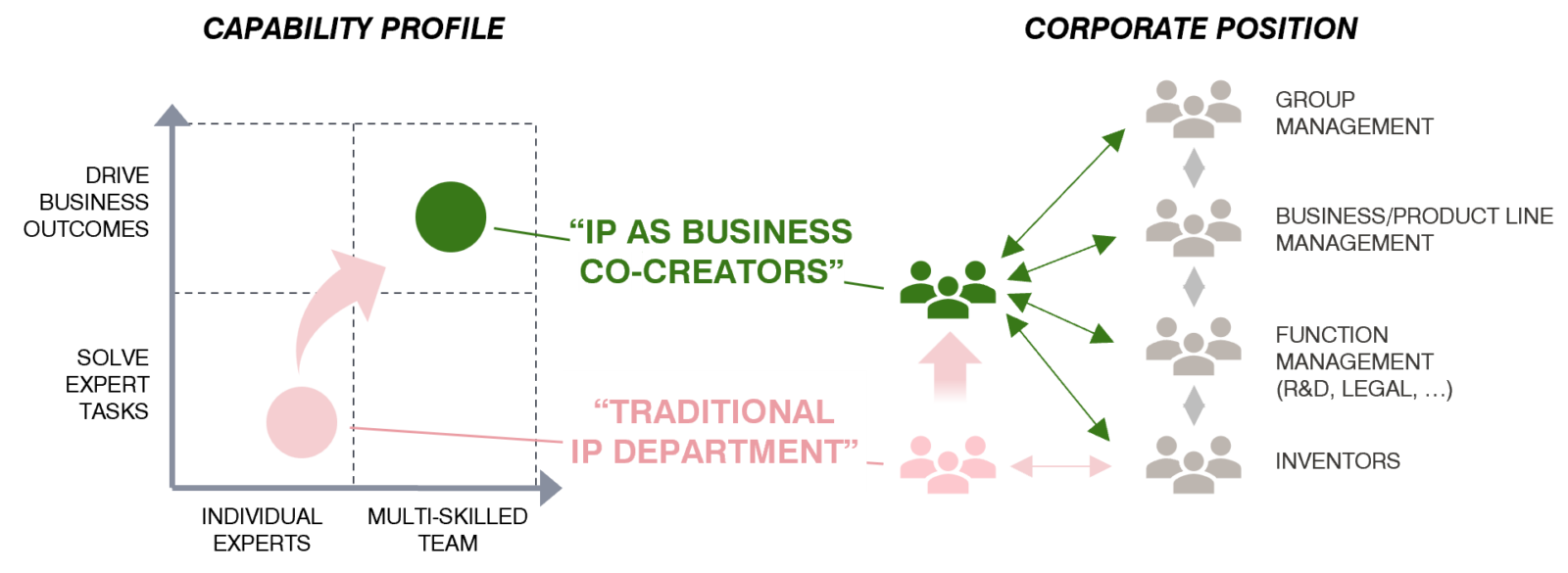 As a result, there is an increasing stakeholder expectation for IP functions to evolve from a traditional mode of providing expert support on request into being able to proactively drive business outcomes by working as a team side-by-side with the business - 'business co-creators'.