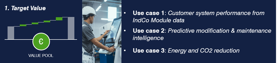 The starting point was the Target Value step, focused on selecting high-value customer use cases. This involved identifying attractive value pools and defining how to capture a fair and substantial share of them.