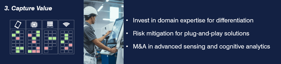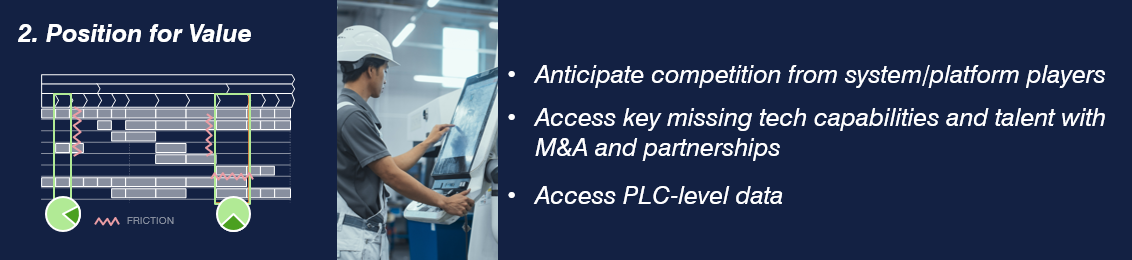 The analysis also identified potential frictions that IndCo’s digital services and strategic repositioning might create with other actors in the ecosystem. These insights informed the subsequent Capture and Control Value steps and helped guide how to defend selected positions and proactively mitigate technology and data-related risks.
